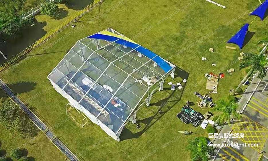 因篷房對搭建場所要求不高,可以搭建在草坪上、水泥地上、水面上等等,活動舉辦者可以更靈活地選擇自己想要搭建的場所。為了更為人性化,透明篷房還有各種形狀和靈活的結(jié)構(gòu)組合,而且搭建簡易迅速、施工周期短,非常適合用于戶外短期或者長期的活動。
